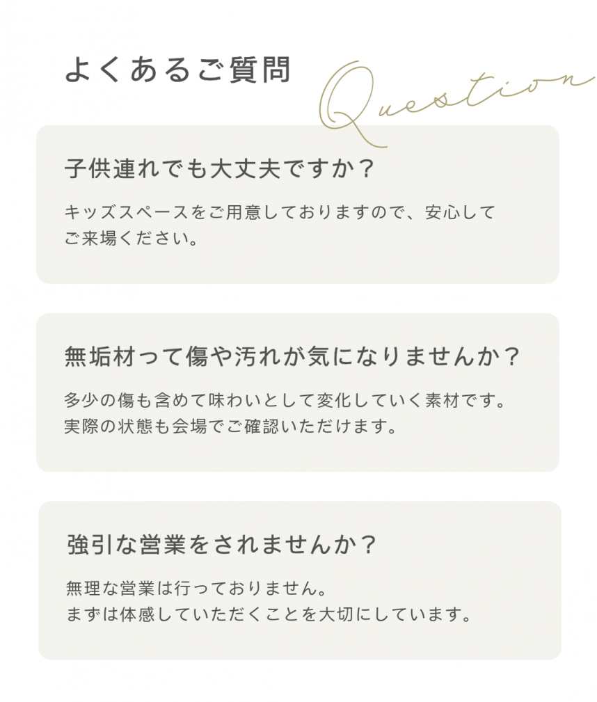 予約制|web予約は前日15時まで。当日のご見学はお電話ください(火・水定休)