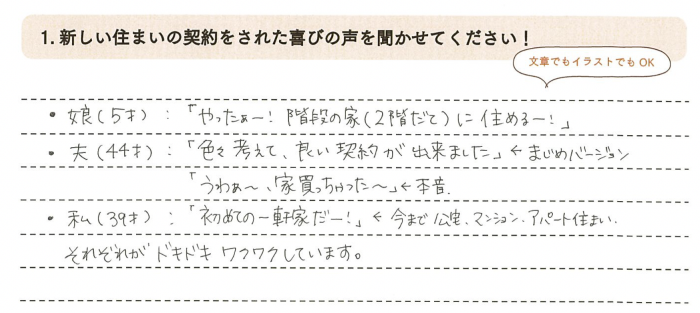 新しい住まいの契約をされた喜びの声をお聞かせください!