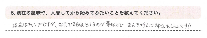 現在はキャンプですが、自宅でBBQをすることが夢なので、友人を呼んでBBQをしたいです!!