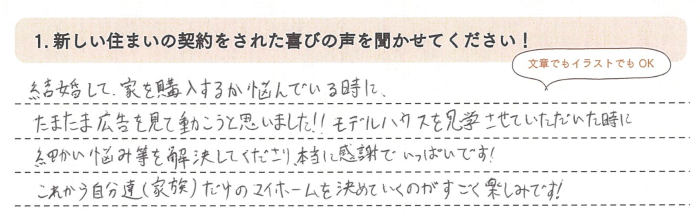 新しい住まいの契約をされた喜びの声をお聞かせください!