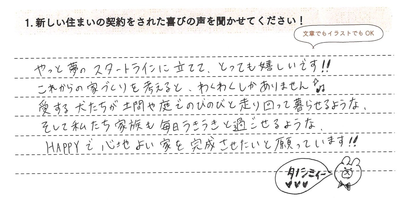 やっと夢のスタートラインに立てて、とっても嬉しいです!!これからの家づくりを考えると、わくわくしかありません