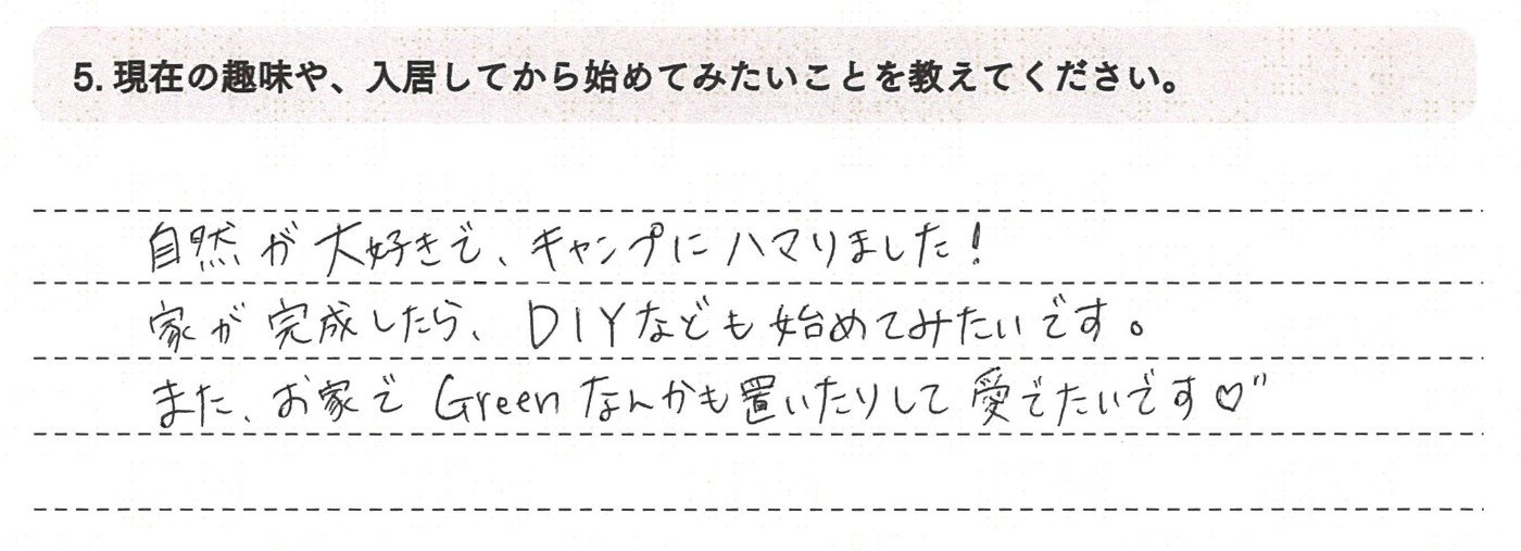 阿部さんとナチュリエさんになら、素敵なお家づくりを任せられると確信したため、御社を選びました!!!