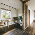 パイン材を使用したやわらかく、肌触りの良い床材。木の質感をそのままに感じられるよう、身体にやさしい自然塗料を塗装しています。ムク材は日当たりや湿度、歩く頻度などによってゆっくり時間をかけて変化します。