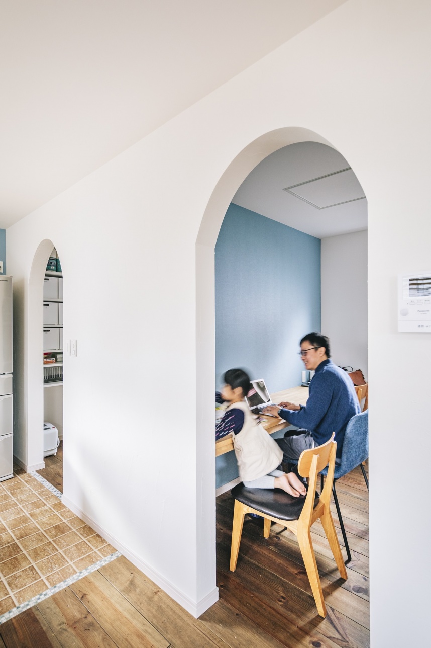 開放的な吹き抜けに、アーチの下がり壁などナチュリエらしさが詰まったすてきなおうちです。