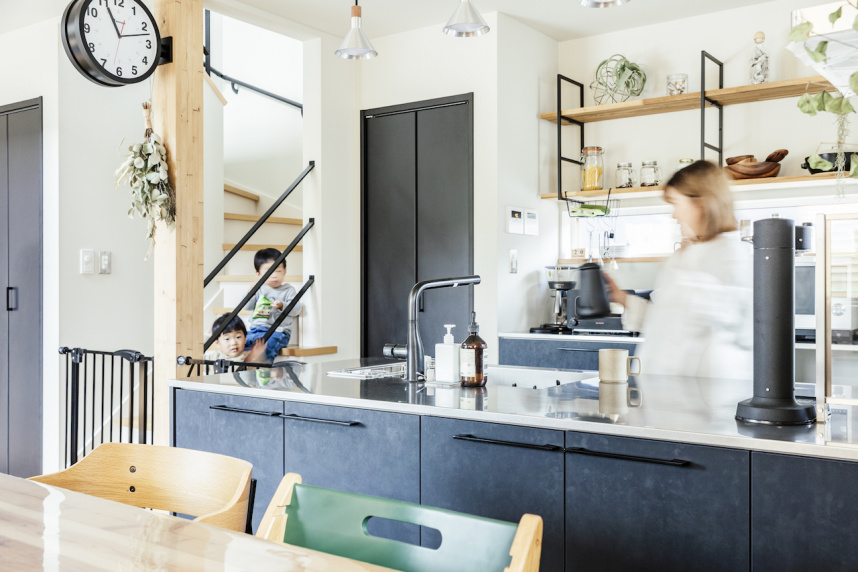 もともと転勤族で、北海道を転々としていました。子供も2人できたし、転職をきっかけに家づくりもスタート。いろいろなハウスメーカーを見学したり、展示場に行ったり、WEBやインスタを見たり。ナチュリエスタジオの近くに住んでいたので、ショップのことは知っていました。たまたまインスタで、アーバンアウトドアハウスの見学会をやっていることを知り、自分たちに合っているかもと思い見学へ。そこで会った木村さんと相性もあって、自分たちのことも理解してくれたので、他も見ようかなと思いましたが、木村さんの人柄と、第一印象でナチュリエに決めました。
