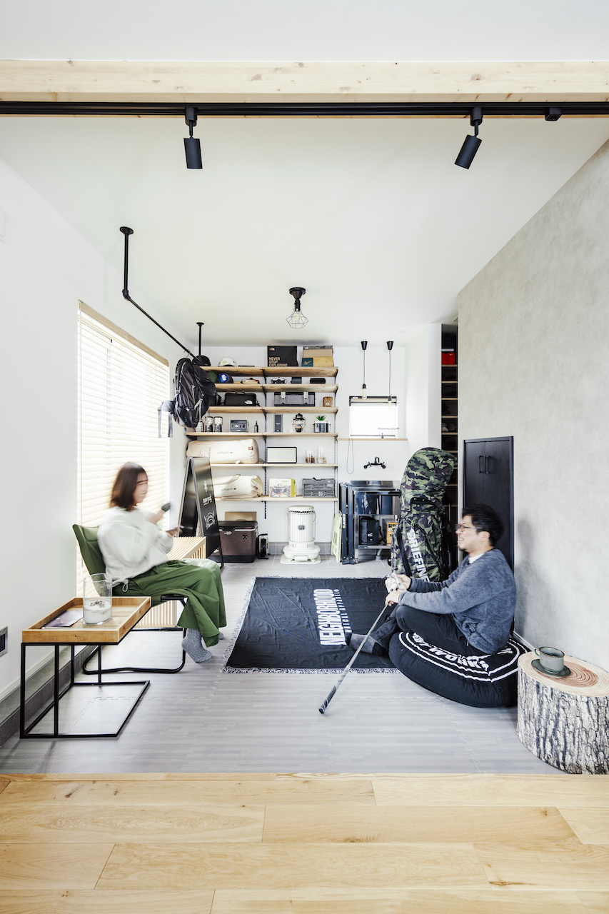 キャンプ道具やゴルフなど、外遊びを楽しむアイテムがいっぱいのS様邸。