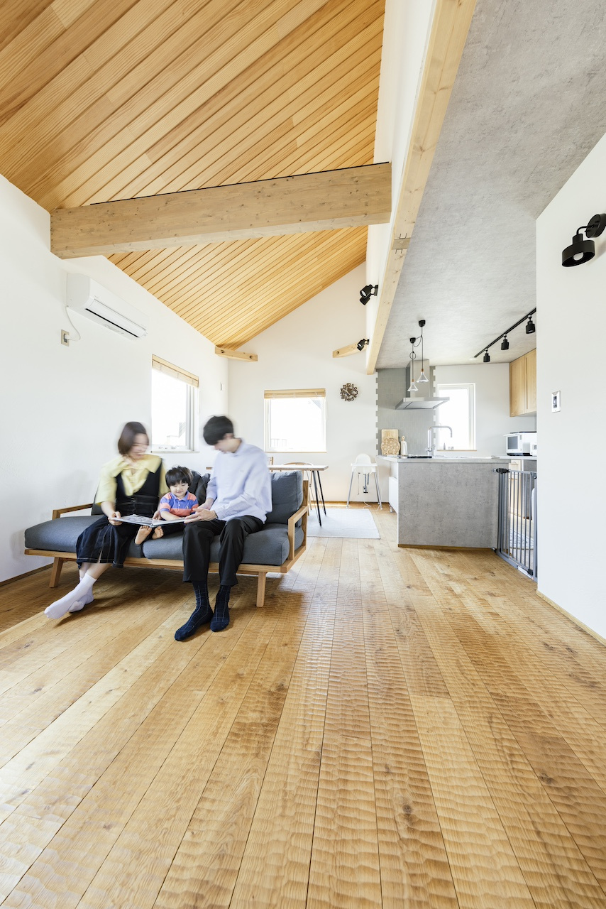 広い土間や明るい2階のリビングで、のびのび暮らすご家族にお話を伺いました。