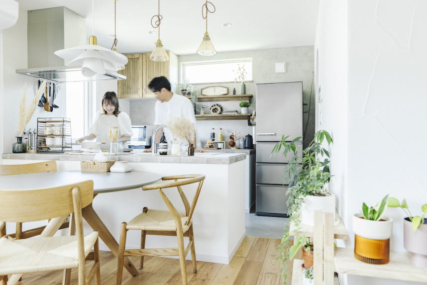 仕事から帰ってきて、明るい空間の中で、ジャズをかけながら、お料理をつくって、カフェにいるみたいでテンションあがります。あと回遊性がある間取りなので、動線がスムーズで過ごしやすい。2階のヌックスペースも主人がDIYしてくれて、本を読んだり、映画みたりしています。